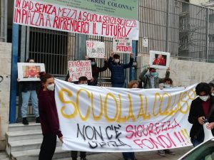 Secondo quanto affermano gli studenti che hanno aderito alla manifestazione, la didattica a distanza non è la soluzione a questa situazione, in quanto ostacola il diritto allo studio, penalizzando i giovani delle periferie e delle classi popolari. E in proposito citano i recenti dati della società di ricerche Ipsos che segnalano 34 mila studenti tra i 14 e i 18 anni a rischio abbandono.