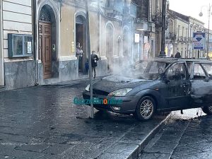 Momenti di paura questo pomeriggio a Giarre nella centralissima via Callipoli a pochi metri dal Municipio. Intorno alle 17,40 una vettura, una Ford Focus, regolarmente parcheggiata sugli stalli blu, ha preso autonomamente fuoco, davanti a decine di persone che sbalordite assistevano alla scena.