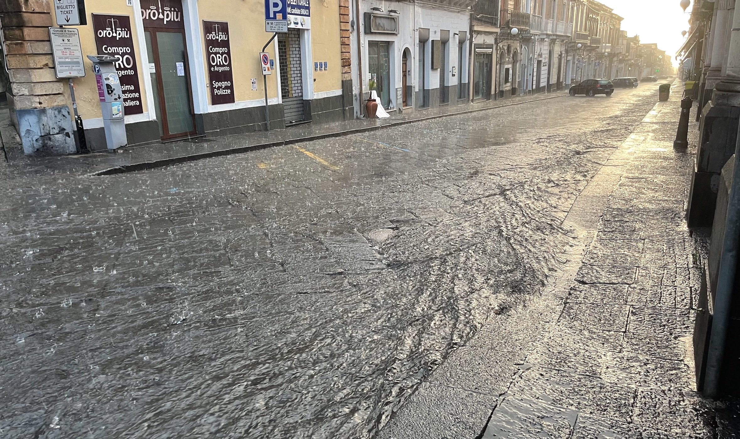 La scena si ripete ad ogni acquazzone. Sottoponti allagati che rendono difficile il transito delle auto. Particolarmente critico del sottopassaggio di via La Torre e via Colussi tra Giarre e Riposto. Critico il quadro anche nella zona di via Settembrini e nel sottopasso di via Almirante dove si segnalano importanti accumuli di acqua piovana. Via Trieste impraticabile per via degli intensi flussi idrici. Analogo il copione sul corso Messina con allagamenti a ridosso dell’area commerciale. A Macchia, sul viale dello Jonio, il vento ha danneggiato le luci artistiche installate in occasione dei festeggiamenti di San Vito. Sempre a Macchia il vento ha abbattuto un grosso ramo d’albero del parco comunale Giardino intralciando parzialmente la carreggiata.