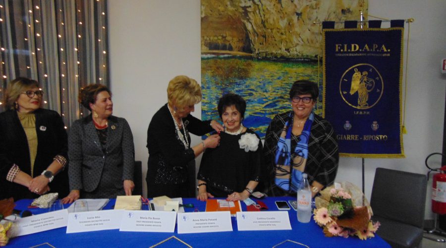 Nella sala di un noto hotel giarrese ha avuto luogo l’inaugurazione del biennio 2021-2023 della Fidapa (Federazione Italiana Donne, Arti, Professioni ed Affari), sezione Giarre-Riposto presieduta dalla dott.ssa Anna Maria Patanè con la presentazione del programma annuale e il resoconto delle attività svolte nel biennio 2019 – 2021 (fortemente condizionate dalla pandemia) e illustrate dalla past presidente prof.ssa Maria Pia Russo.
