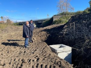 Il sindaco Cantarella, accompagnato dal funzionario dell’Ufficio Acquedotto, Mario Patanè (nella foto a sinistra), ha seguito da vicino le operazioni finalizzate all’interramento di un nuovo tratto di tubazione, circa 140 metri e di 800 di diametro. Metà della tubazione è stata già interrata e si procede con il completamento delle operazioni approfittando delle buone e perduranti condizioni meteo.