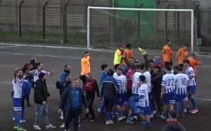 TORRE ARCHIRAFI. Domenica 27 febbraio 2022, pomeriggio. Il “Luigi Averna” di Torre Archirafi ospita la gara Russo Calcio-Polisportiva Sant’Alessio. I padroni di casa hanno rimontato lo svantaggio iniziale e adesso conducono per 2-1. Si aspetta solo il triplice fischio finale. Ci sono quattro minuti di recupero. Il tempo scorre lento… troppo lento. Finalmente, alle 17:22, il sig. Carnemolla, con un triplice fischio, segna la fine della gara. Risultato finale 2-1 per i padroni di casa. Finisce la 16ma giornata di ritorno. Lo stesso triplice fischio, però, chiude anche… il girone F del campionato di I Categoria! Prima in campo, poi sugli spalti. Il “Luigi Averna” esplode di gioia. Abbracci, braccia al cielo… anche qualche lacrima. Con i tre punti conquistati a danni del Sant’Alessio la Russo Calcio… finalmente… ha chiuso il campionato! L’eroe di giornata è Varrica (foto sotto).