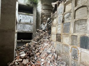 Insomma un vero corto circuito municipale, considerato che il sindaco Cantarella ha confermato di essere a conoscenza dei fatti solo in maniera superficiale. E di sconoscere totalmente un secondo episodio che ha dell’incredibile. Nell’area monumentale del cimitero si è verificato, anni orsono, all’interno di una cappella con sepolture risalenti all’800, il crollo di una parete, provocando la distruzione di decine di nicchie con i resti dei defunti finiti tra le macerie.