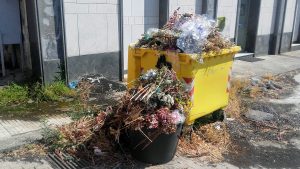 Tra questi un nostro lettore che ci scrive: “In estate, quando torno in Sicilia per le vacanze, è mia abitudine andare a trovare i miei nonni defunti e seppelliti al Cimitero di Giarre (Trepunti). Ho trovato una situazione di degrado e di abbandono imbarazzanti:cappelle trasformate in discariche di rifiuti dalla maleducazione e inciviltà di alcuni cittadini, erbacce, cassonetti stracolmi non svuotati da tempo, sporcizia, uno stato d’abbandono generale. Da cittadino rispettoso ho scritto un fOglio che ho attaccato sulla finestra di una cappella, l’ho ripulita come meglio ho potuto”.