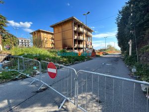 Nell’area perimetrale dei complessi edilizi sarà consentita solo la presenza degli addetti dell’impresa con i mezzi meccanici che stamane hanno iniziato ad abbattere uno dei prospetti laterali della palazzina C.