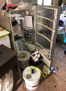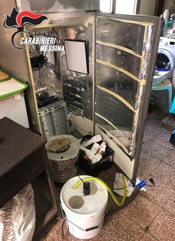 Nel tardo pomeriggio di ieri i Carabinieri hanno eseguito una perquisizione domiciliare che ha permesso di trovare una serra artigianale realizzata all’interno di un frigorifero in disuso che era stato adibito per la coltivazione di cannabis ed allestito con una copertura termica, ventilatori, deumidificatore e persino un impianto automatizzato di irrigazione.