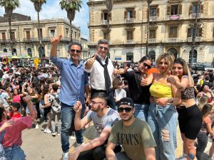 E poi la grande festa degli studenti delle scuole superiori di Giarre che hanno dato vita alla Giornata della Creatività. Un turbinio di colori, musica live che ha coinvolto anche il sindaco Leo Cantarella che non ha voluto rinunciare al contatto con centinaia di studenti che hanno trasformato la piazza in una gigantesca discoteca all’aperto. “Risposta meravigliosa della gente – commentano il presidente della Pro loco Aps, Salvo Zappalà e Daniele De Vincenzo di Etnazar – che dimostra che abbiamo fatto bene a interpretare la voglia delle persone e delle attività produttive di stare insieme e guardare avanti, respirare stando insieme.