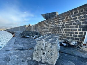L’impresa catanese, incaricata dal Servizio 6, Infrastrutture marittime e portuali della regione Siciliana (assessorato Infrastrutture) è al lavoro ed già ha rimosso i detriti che si trovano sulla banchina, allo stato interdetta.