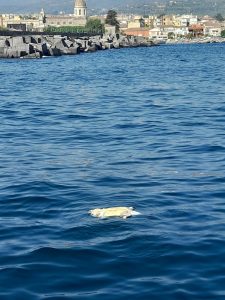 La carcassa di una tartaruga marina è stata notata galleggiare nello specchio d’acqua del molo Costanzo, nel porto peschereccio di Riposto.