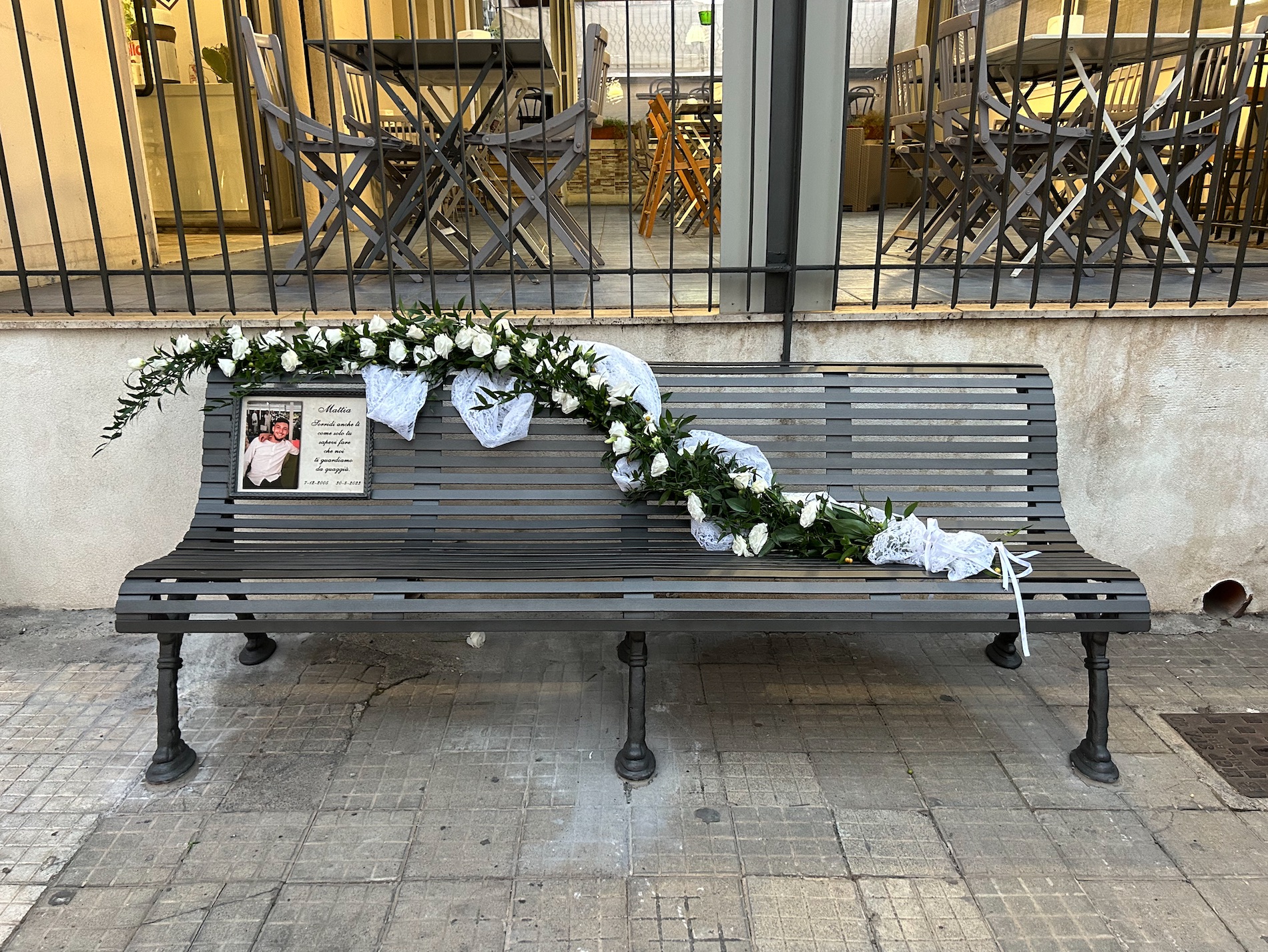 Per iniziativa dei genitori, del fratello di Mattia, Simone, della fidanzata Aurora e di un nutrito gruppo di amici di Mattia, alla presenza del sindaco Leo Cantarella che ha condiviso l’iniziativa, è stata inaugurata la panchina della memoria. Presente per una preghiera anche il neo parroco della chiesa del Carmine, il frate francescano Emanuele Artale.