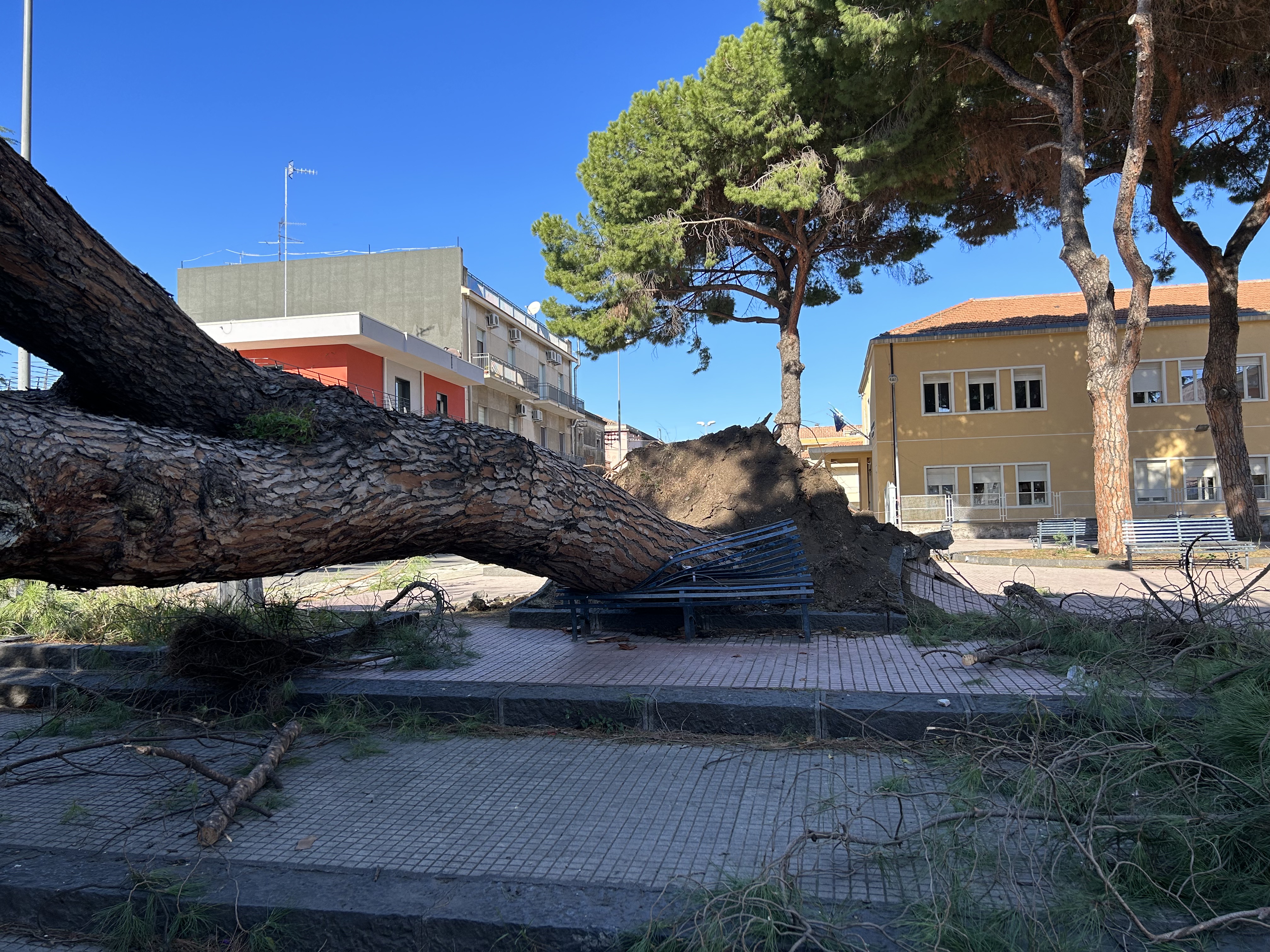 Il forte vento che ha colpito Giarre e Riposto domenica 10 dicembre ha provocato danni in diverse zone delle due cittadine joniche. A Giarre, il cedimento di un enorme pino secolare, in piazza Don Bosco, ha reso intransitabile il corso Sicilia per tutta la mattinata di lunedì.