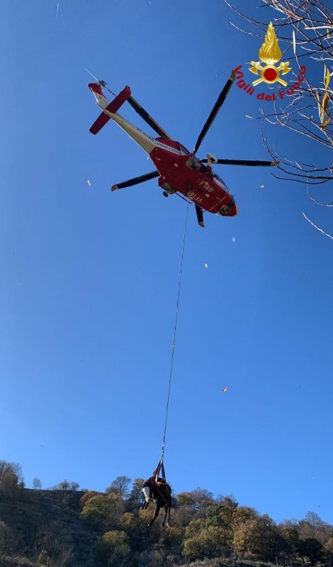 Sul posto è stata inviata la squadra dei vigili volontari del Distaccamento di Mojo Alcantara con il supporto del VF Drago del Nucleo di Catania, con a bordo specialisti soccorritori esperti per l’imbraco e la messa in salvo del bovino.