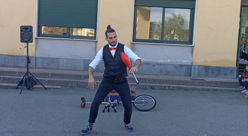 E’ stata una giornata all’insegna della spensieratezza, dell’allegria e della leggerezza che ha appassionato i piccoli alunni dell’Istituto intrattenuti dalla banda musicale e affascinati dalla presenza di un artista di strada che li ha coinvolti nel ballo e in vari giochi.