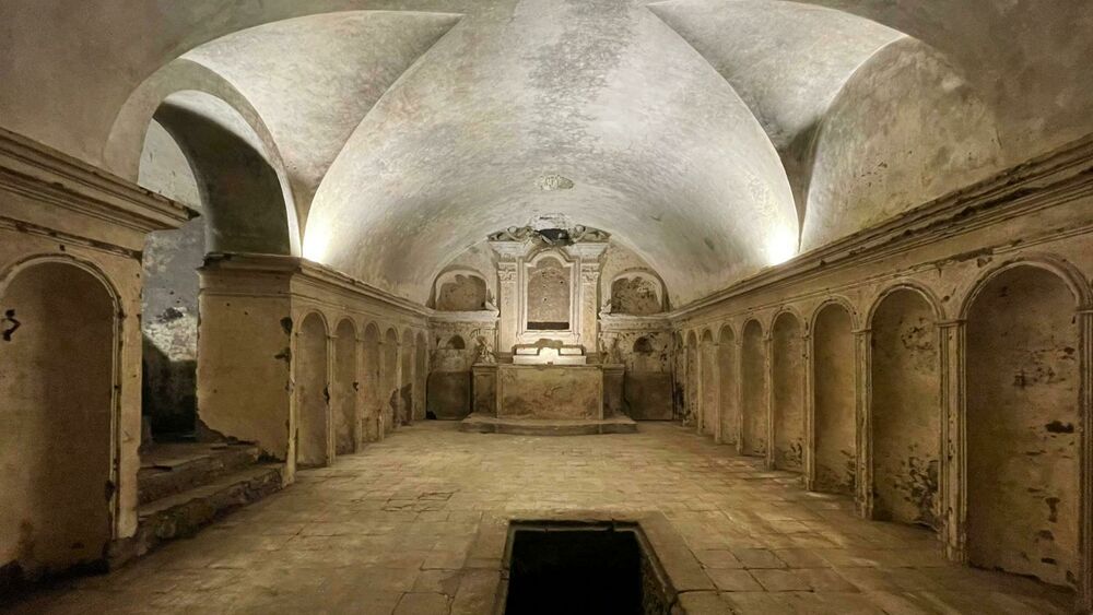 Il plesso sacro che ricade nel cuore del centro storico, alle spalle di piazza Duomo, conserva diverse antiche cripte, venute alla luce negli anni scorsi durante alcuni interventi di manutenzione della Sovrintendenza, all’interno delle quali venivano inumati, imbalsamati e conservati i defunti.