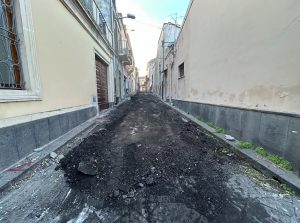 Mezzi cingolati e bob-cat in azione in via Filo, una delle strade maggiormente martoriate con la pavimentazione dell’intero tratto di strada che si inerpica nel cuore del centro cittadino. La stradina comunale, nella quale si affacciano decine di abitazioni, benchè non sia altamente trafficata, era comunque ridotta, da lungo tempo, ai minimi termini. Numerose le segnalazioni dei residenti pervenute al Comune, oltre ad alcune interrogazioni in Consiglio comunale.