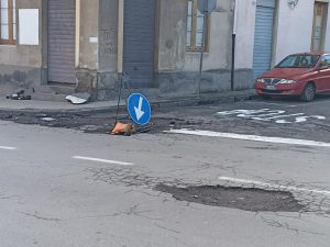 “La polizia locale ha provveduto a segnalare l’area indicata – ha detto il sindaco Luigi Messina -. Per potere intervenire e ripristinare l’asfalto è necessario che le condizioni meteo siano favorevoli tanto da permettere agli operai di rimuovere le zone ammalorate e procedere alla bitumazione”.