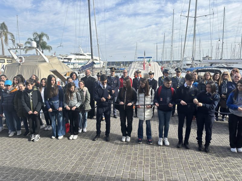 I ragazzi hanno insieme annodato delle cime blu, in rappresentanza dei Comuni di riferimento, formando un unico nodo in comune tra i Comuni, dopo avere appreso, da parte degli istruttori LNI, l’arte dei nodi marinareschi.