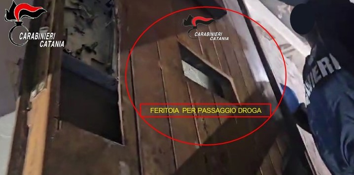 Qui i militari, si sono trovati di fronte ad una porta blindata, con un’apertura rettangolare con sportellino in ferro richiudibile dall’interno, che consentiva di poter smerciare la droga “in sicurezza” dall’interno, al sicuro dei possibili blitz delle forze dell’ordine.