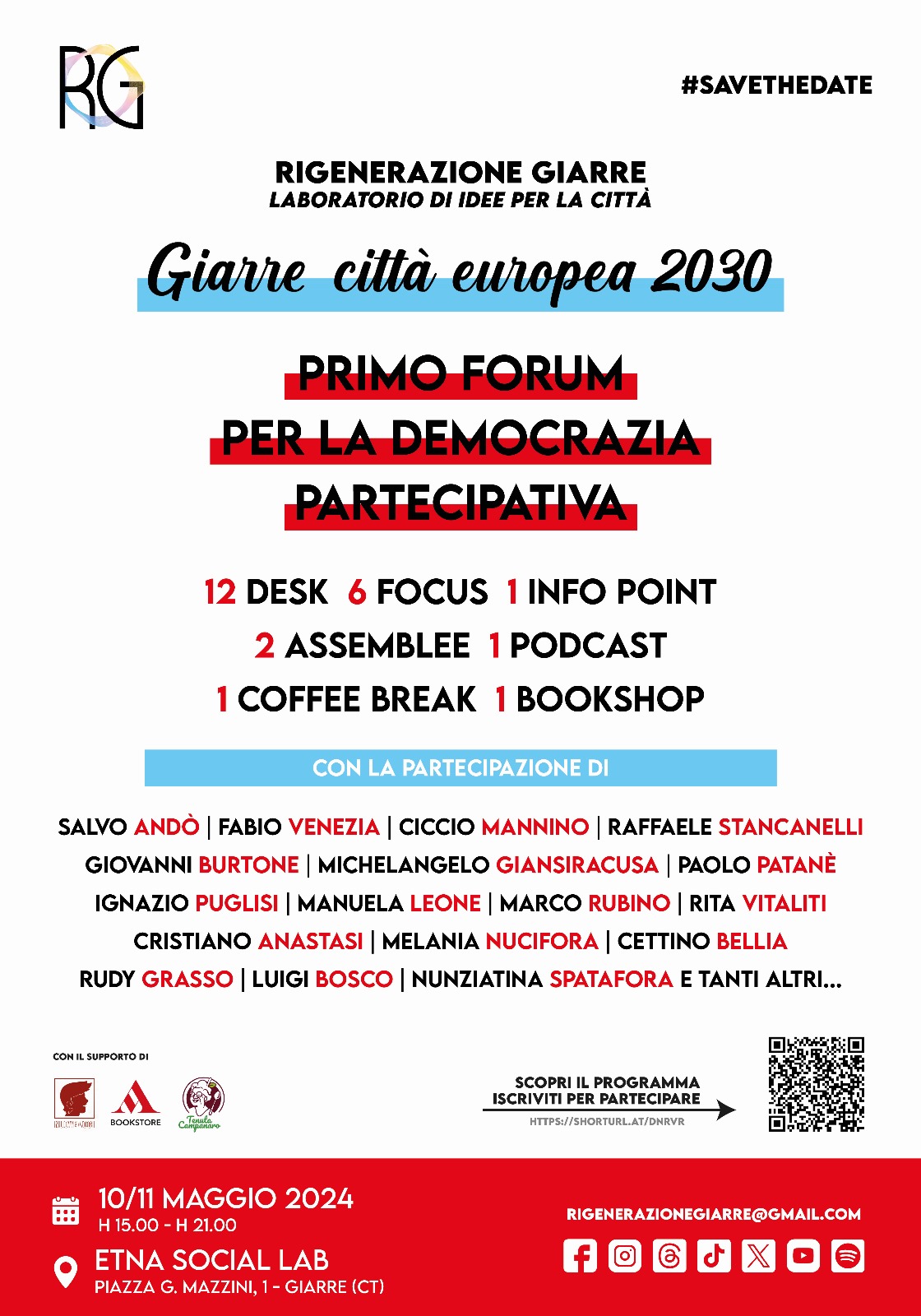 Entra nel vivo l’iniziativa promossa da Rigenerazione Giarre: il Primo Forum per la democrazia partecipativa dal titolo Giarre città europea 2030, in programma venerdì 10 e sabato 11 negli spazi dell’Etna Social Lab (ex Acquario del Mediterraneo), di piazza Mazzini, dalle 15 alle 21. L’apertura del Forum avverrà con una assemblea cittadina, che diventerà occasione per fornire indicazioni sulle modalità di svolgimento del forum e di indicare la modalità di fruizione dei desk e dei focus in programma nelle due giorni.