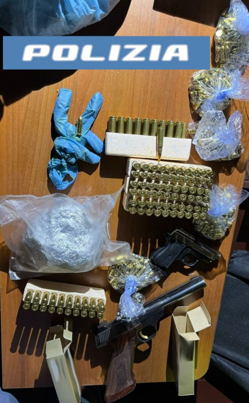 La coppia, oltre alla droga, aveva in casa anche un arsenale, infatti, sono state rinvenute e sequestrate 2 pistole illegalmente detenute, circa 500 munizioni di vario calibro e un giubbotto antiproiettili.