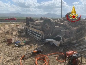 L’incidente ha riguardato un camion che trasportava fichi d’india. Il conducente ha perso il controllo del mezzo pesante, per cause in corso di accertamento, ed è uscito fuori strada finendo la sua corsa nelle campagne circostanti.