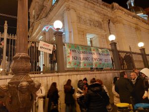 A Giarre è tradizione incontrarsi in piazza Duomo per lo zucco per scambiarsi gli auguri. Quest’anno lo zucco è stato anche occasione di riflessione su ciò che accade nel mondo e, in particolare, sul genocidio in corso in Palestina, nell’indifferenza generale.
