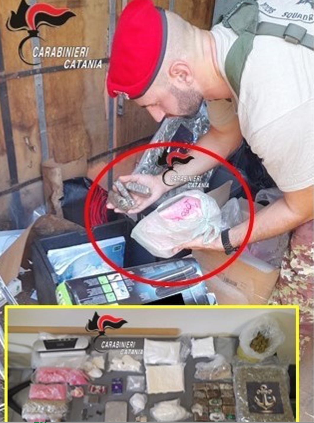 Sulla base degli elementi raccolti da verificare in sede giurisdizionale, il 33enne è stato tratto in arresto e, su disposizione dell’Autorità Giudiziaria, sottoposto agli arresti domiciliari, mentre il tutte le droghe sequestrate sono state inviate al Laboratorio Analisi Sostanze Stupefacenti (LLAS) del Comando Provinciale dei Carabinieri di Catania per gli esami qualitativi e quantitativi.