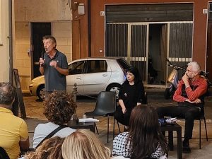 Antonio Mazzeo, che aveva partecipato alla prima flottilla, ha sottolineato che un giorno si dovrà ricostruire il ruolo, a tutti i livelli (Politica, banche, imprese), che sta avendo il nostro Paese in questo genocidio:l’Italia ha le mani sporche di sangue. Ha poi rilevato la presa di coscienza della popolazione, a partire dai docenti che, ormai, da decenni non scioperavano più. Ha poi insistito molto sul ruolo che la pressione pubblica può avere sul governo. Ed è necessario che la popolazione faccia capire che non è normale che il 14 ottobre si giochi a Udine la partita della vergogna: Italia-Israele, come se nulla fosse.