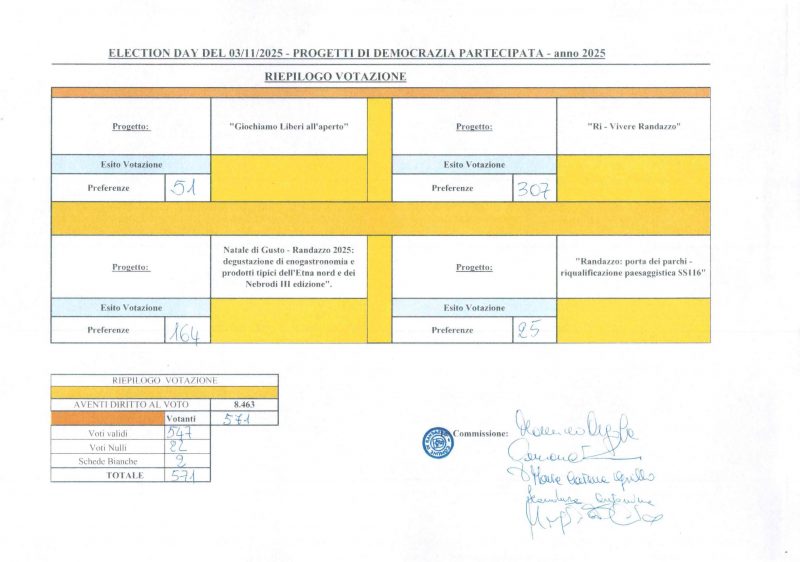 In definitiva l’edizione 2025 dell’elezione della “Democrazia Partecipata” di Randazzo si è conclusa con un bilancio positivo: hanno vinto la democrazia e la libertà di scegliere.