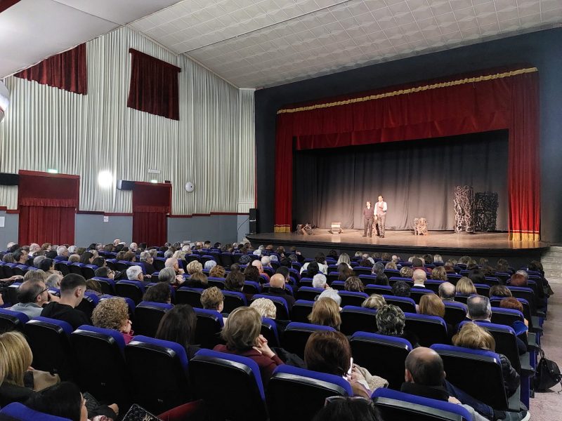 Una sala riempita da uno spettacolo colto, dove le citazioni del copione e l’abilità interpretativa del protagonista le potevano cogliere al meglio quanti avevano letto tutti, o buona parte, dei libri e novelle di Luigi Pirandello.