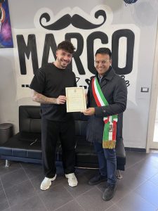 Considerati gli impegni lavorativi del sabato, il sindaco Vasta ha raggiunto personalmente Marco Puglisi nella sua barbieria per consegnargli il riconoscimento.