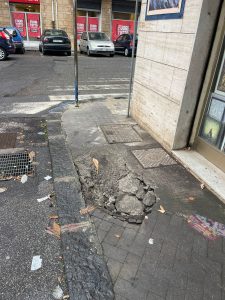 Un improvviso cedimento del marciapiede si è verificato nei giorni scorsi in via Salvatore Quasimodo, nel cuore di uno dei quartieri residenziali più popolosi della città. A rendere evidente la gravità della situazione è una voragine profonda e non ancora transennata che si è aperta proprio all’angolo di un esercizio commerciale, a pochi passi da un incrocio pedonale molto trafficato.