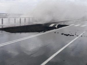 Il mare ha già raggiunto abbondantemente la sede stradale.