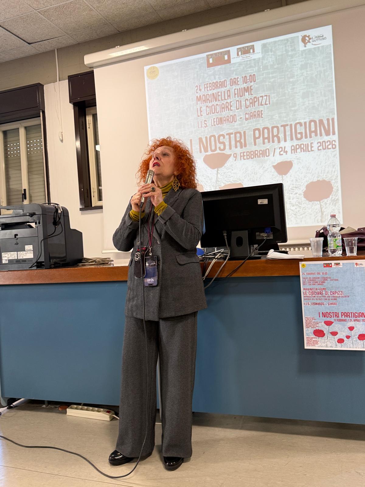 La presentazione del libro “Le Ciociare di Capizzi” ha rappresentato, per gli studenti del liceo “Leonardo” di Giarre, un momento di intensa partecipazione culturale e civile, grazie alla presenza dell’autrice Marinella Fiume e al coinvolgimento attivo degli studenti, veri protagonisti dell’incontro, accolto favorevolmente dalla dirigente scolastica, Tiziana D’Anna, nell’ambito del progetto, promosso dall’ Anpi di Giarre e Riposto, “I nostri partigiani”.
