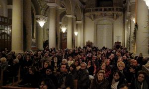 Il Duomo di Giarre gremito in ogni ordine di posto ha fatto da cornice a uno degli appuntamenti culturali più intensi e partecipati degli ultimi tempi: ‘La Via Crucis Siciliana’ del cantastorie Luigi Di Pino. Lo spettacolo, che ha riscosso un successo di pubblico e di critica, è riuscito ad unire arte, tradizione e spiritualità in un racconto suggestivo e coinvolgente. L’atmosfera che si è creata all’interno della chiesa è stata carica di fascino ed emozione, sospesa tra musica, parola e immagini, in un perfetto equilibrio che ha saputo catturare l’attenzione e il cuore dei presenti.