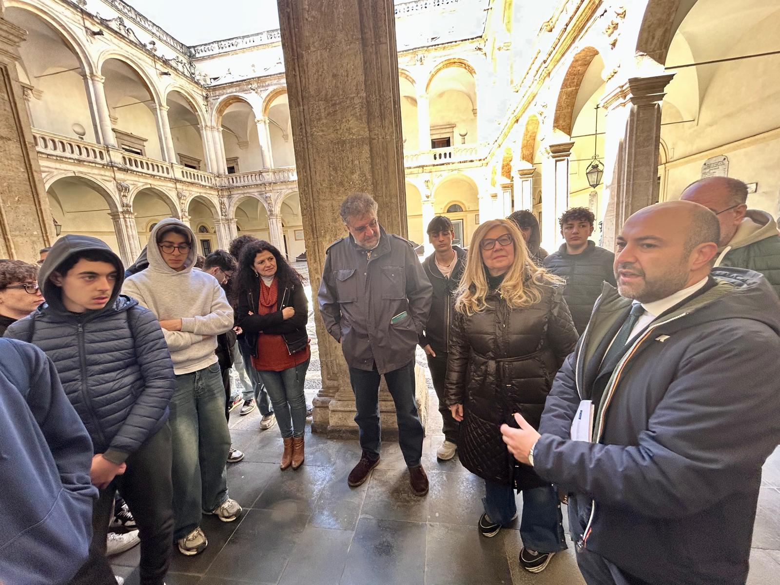 La passeggiata si è conclusa a Palazzo Platamone dove, dopo l’intervento della Dirigente Scolastica dell’Ipsseoa “G. Falcone” di Giarre, prof.ssa Monica Insanguine, che ha sottolineato l’alta valenza formativa dell’attività in corso, si è svolto un laboratorio di scrittura creativa propedeutico alla realizzazione dell’antologia, guidato dall’autore e dai docenti degli Istituti che hanno positivamente interagito con gli studenti.