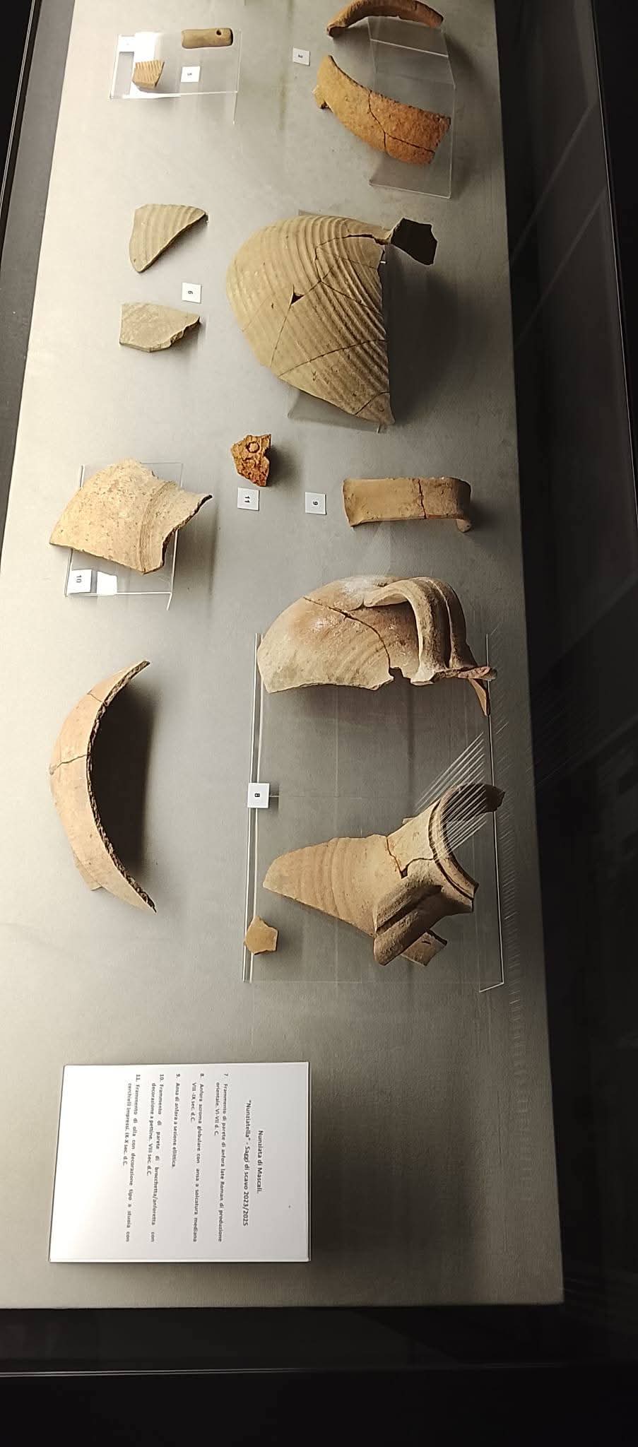 I reperti sono stati esposti in delle teche realizzate da un artigiano mascalese e permettono di ammirare frammenti di vasellame e tegole ritrovati nei recenti scavi realizzati nell’area di proprietà del comune di Mascali adiacente alla chiesa della Nunziatella, oltre a foto degli ultimi interventi.